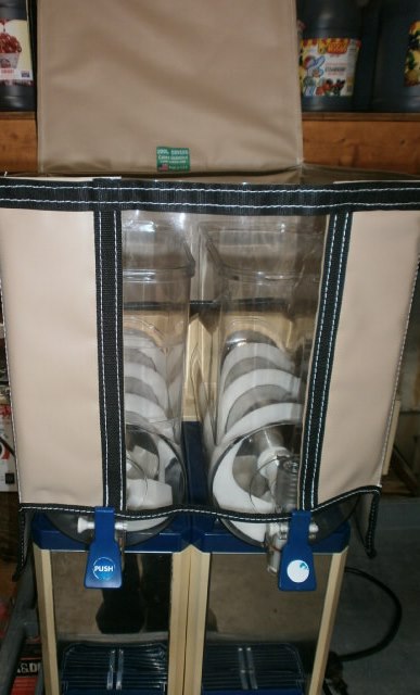 This Cool Cover is designed for the outdoor rental of the faby, bunn, granita, vevor, carpigiani or similar frozen drink machines. This is a necessity for rental companies or individuals using any machine in a hot environment. The Cool Cover is also a benefit to convenience stores where several machines together create a hot environment in a confined space.